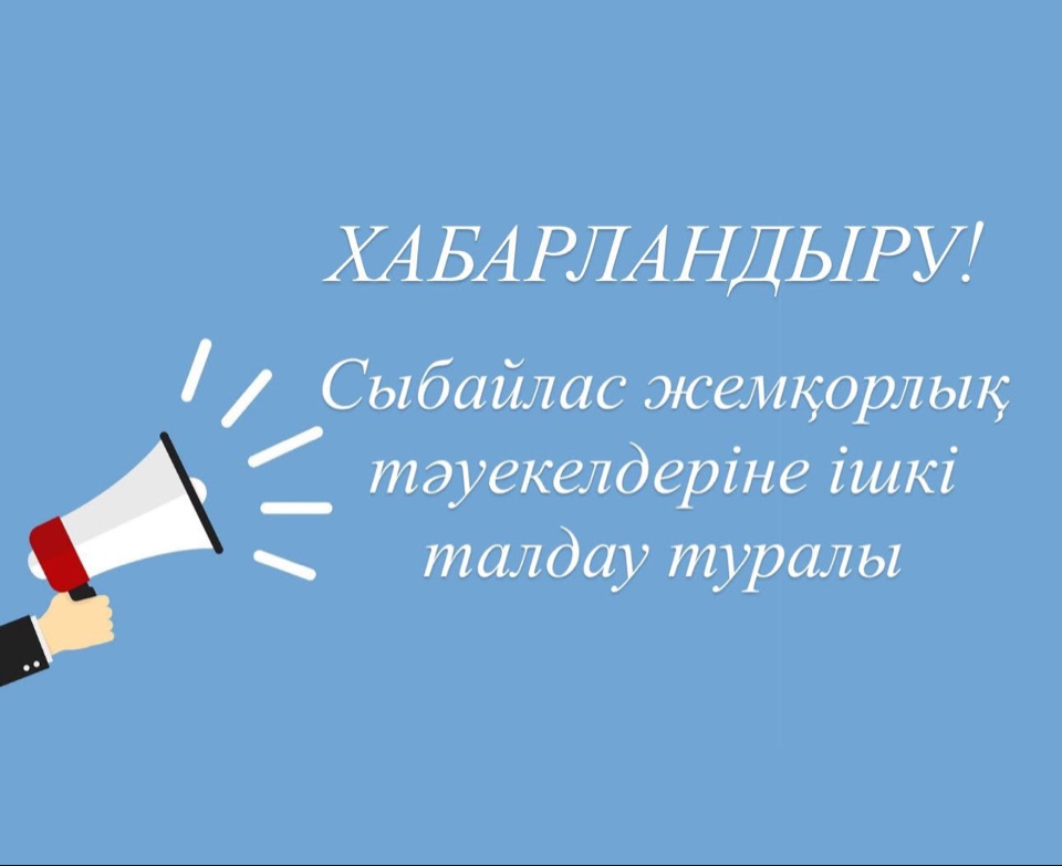 - СЫБАЙЛАС ЖЕМҚОРЛЫҚ ТӘУЕКЕЛДЕРІНЕ ІШКІ ТАЛДАУ ТУРАЛЫ ХАБАРЛАНДЫРУ!