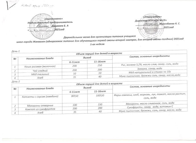 10.02.2023 жылы күні Оқушыларға ұсынылған ас мәзірі