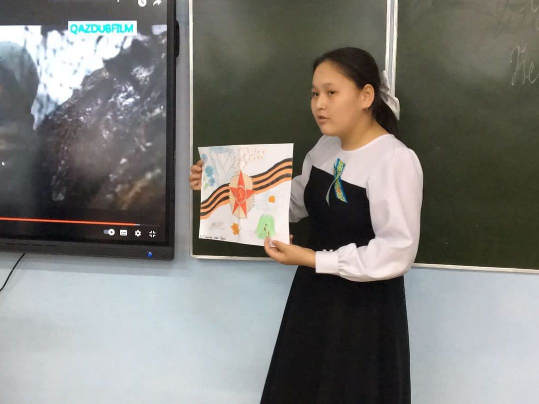 9 мамыр - Жеңіс күні. Ұлы Отан соғысы аяқталғаннан бері көптеген жылдар өтті. Қазіргі ұрпаққа соғыс жылдары қандай болғанын елестету өте қиын. Өйткені, біздің бақытымызға орай, бейбітшілікте туып, соғыстың қасіретін тартпадық. Біз, Ұлы Отан соғысына қатысқандардың ерліктері туралы еш уақытта ұмытпаймыз. Бұл мереке - тек ардагерлер мен соғыс ардагерлерінің балалары үшін ғана емес, еліміздегі барлық адамзаттың мерекесі. Бұл күні біздің жүрегімізде бақыт, қуаныш сезімдері, ең бастысы - мақтаныш сезімдері бар. Біз батырлардың ұрпағымыз. Ер есімі-ел есінде болары сөзсіз. Ешкім де ешқашанда ұмытылмайды. Осындай бейбіт күніміз үшін соғыс ардагерлеріне мың тағзым. Сондықтан оқушыларға патриоттық сезімдерін шыңдауға, Отанды сүюге, соғыс ардагерлерін құрметтеу мақсатында 7 “Г” сынып жетекшісі А. Төлепбергенова “Бейбіт күн жасасын әлемде!” атты тәрбие сағатын өтті.